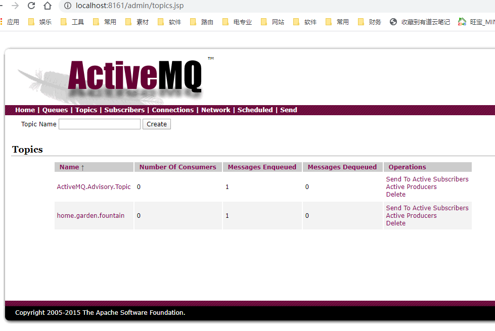http://localhost:8161/admin/topics.jsp 可以看到已经有了主题