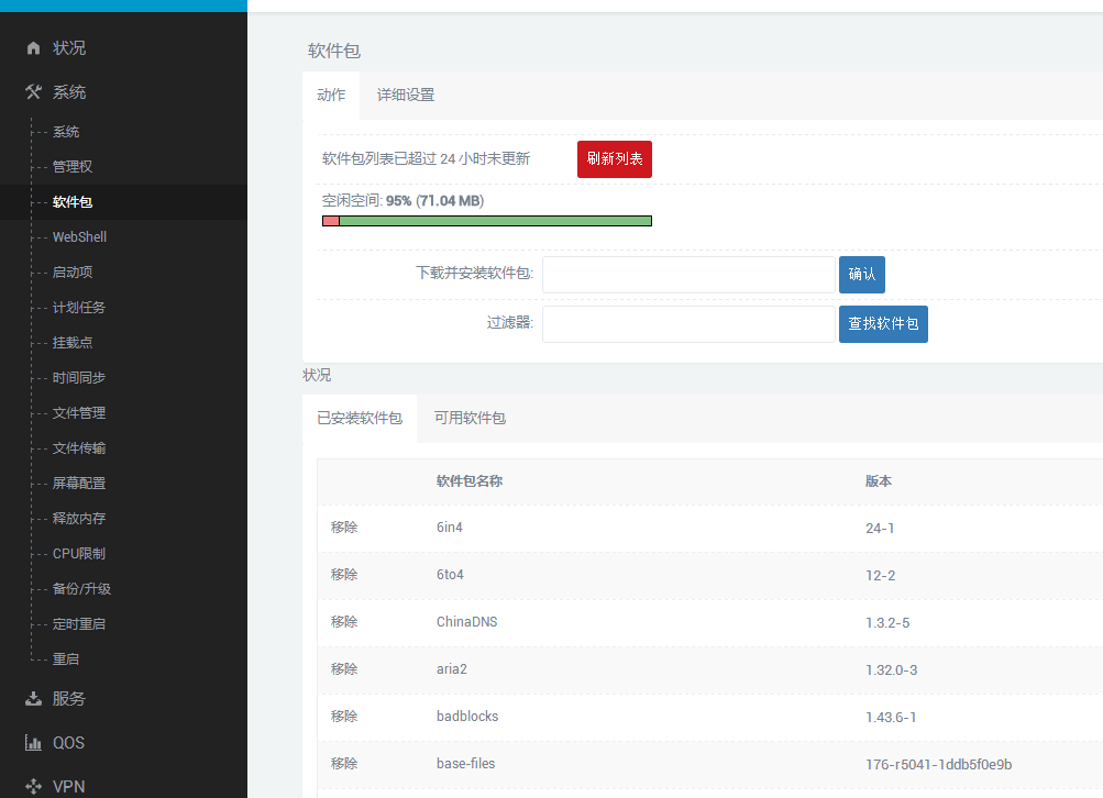 这里需要在lede的web界面安装,否则会出现依赖错误,原因我没有做深究。